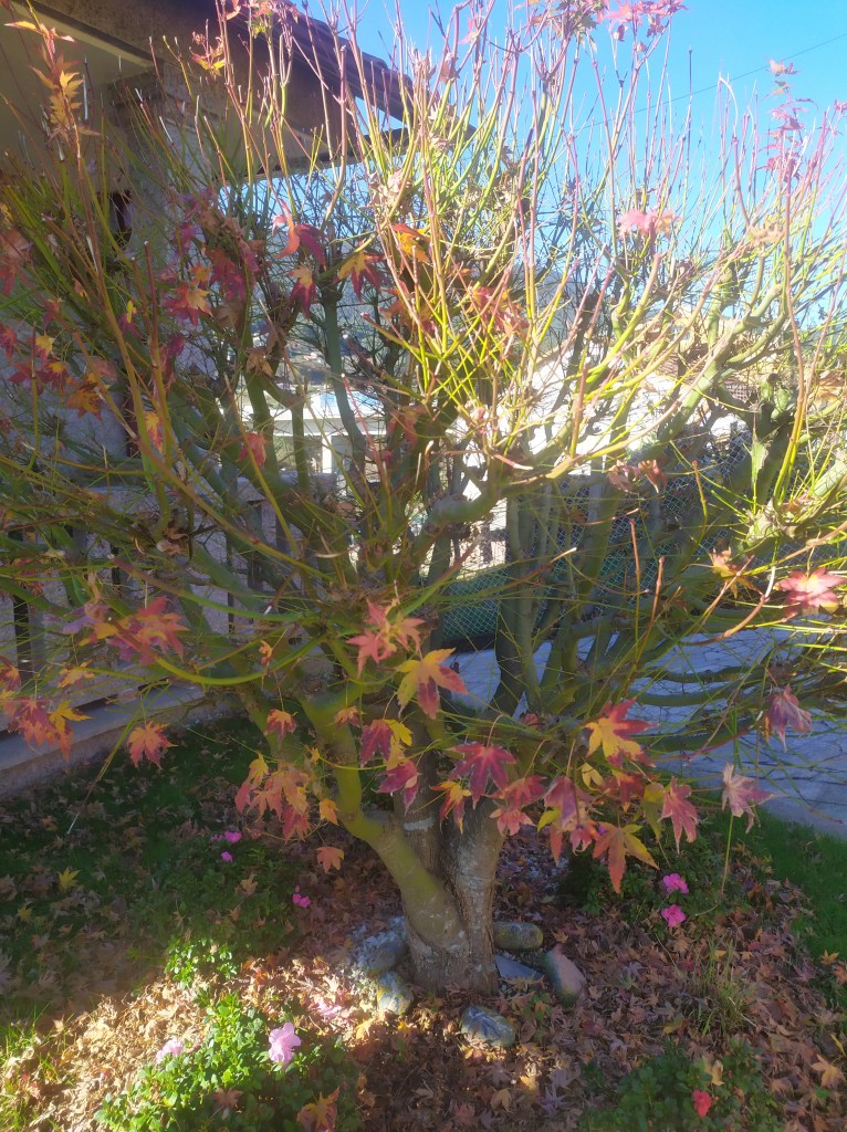 Observando mi pequeño arce en esta época del año, siempre me sorprende descubrir cómo, en cuestión de escasos días, ha pasado de estar repleto de hojas verdes y doradas a quedarse tan solo con unas pocas hojas cobrizas antes de desnudarse por completo para recibir el invierno, mientras otras plantas del jardín florecen en todo su esplendor.